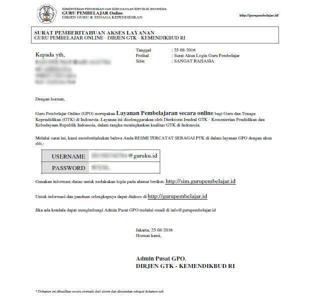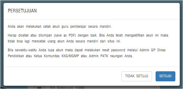 - Selanjutnya secara otomatis browser internet Bapak/Ibu Guru akan menyimpan file akun registrasi guru pembelajar online pada komputer dalam bentuk file pdf.